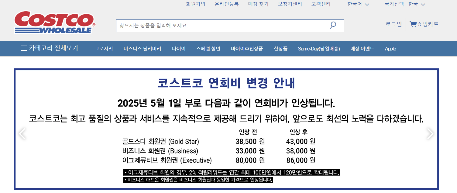 📌 2025년 5월 1일부터 코스트코 연회비 인상 (최대 15%)