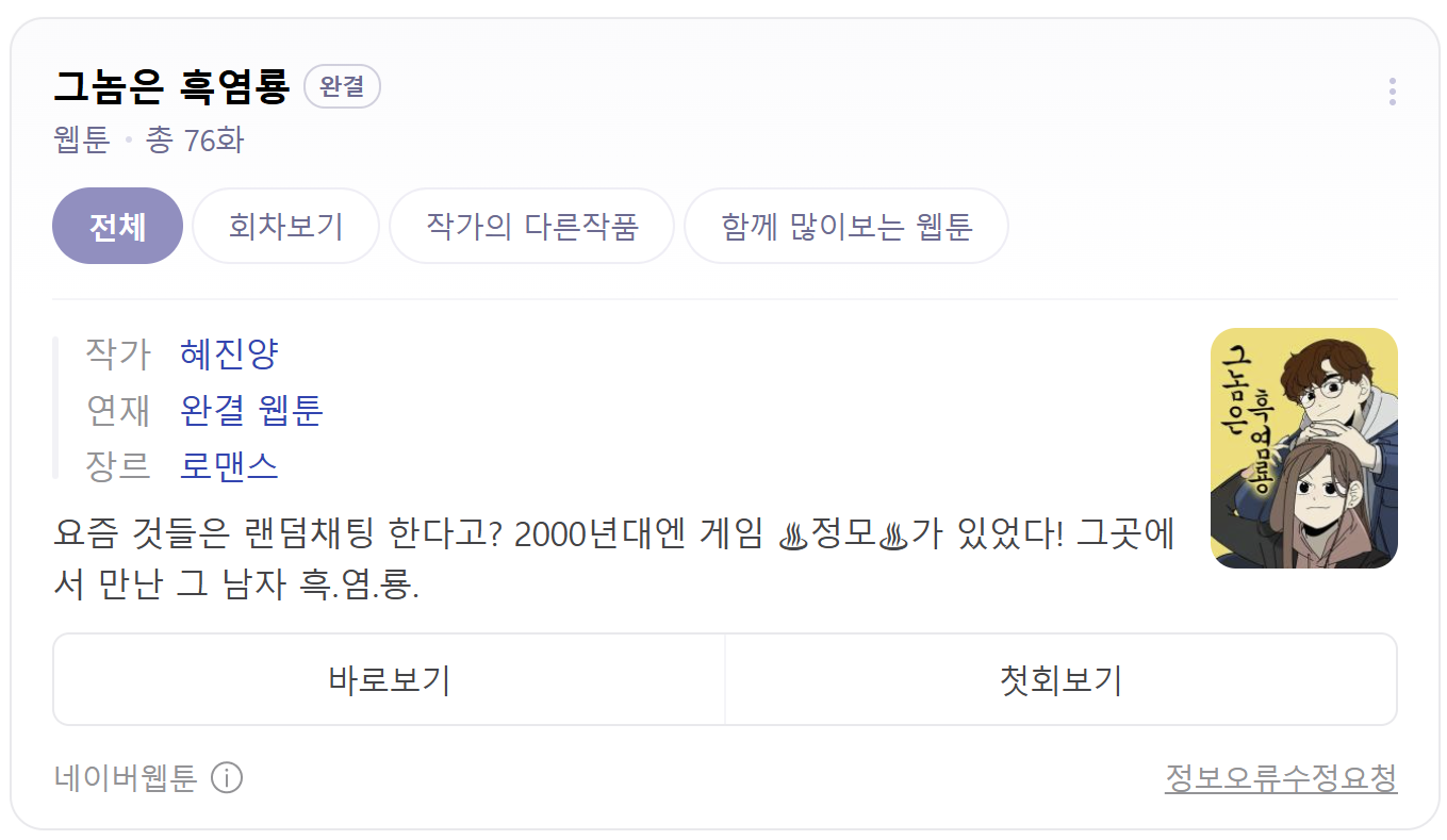 ✔ 웹툰 제목: "그놈은 흑염룡"