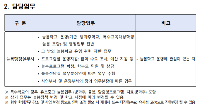 늘봄행정실무사의 업무는 학교 환경과 운영 방식에 따라 달라질 수 있습니다.