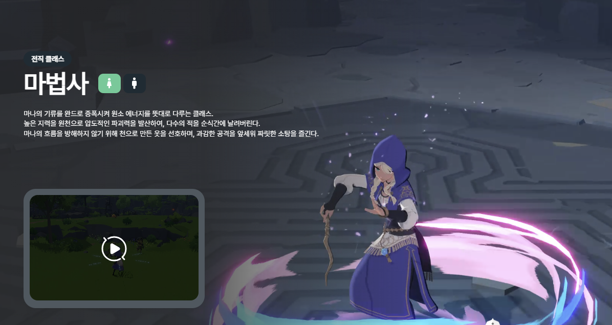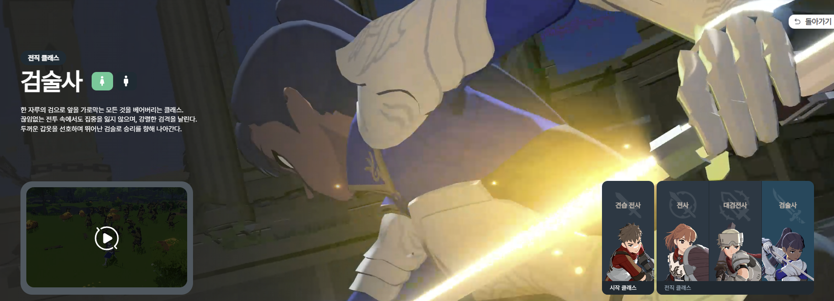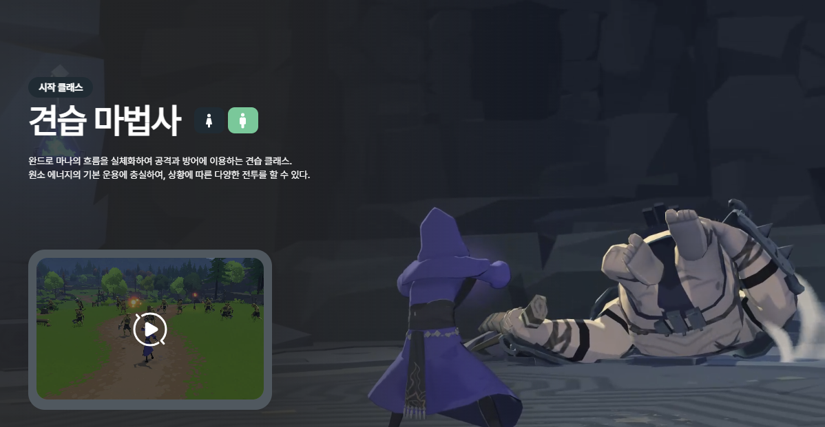 - 검술사: 빠르고 화려한 검술, 높은 컨트롤 난이도를 선호하는 유저에게 추천.