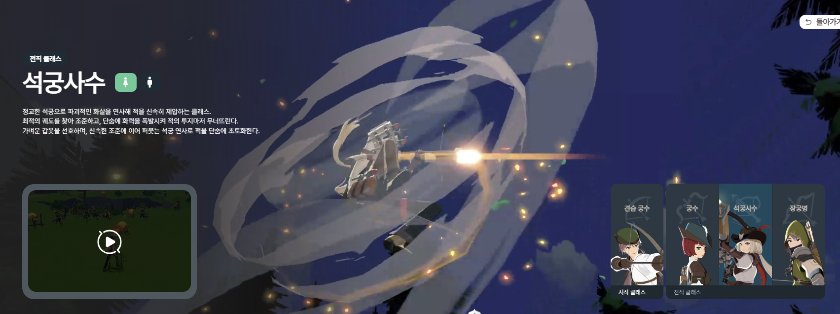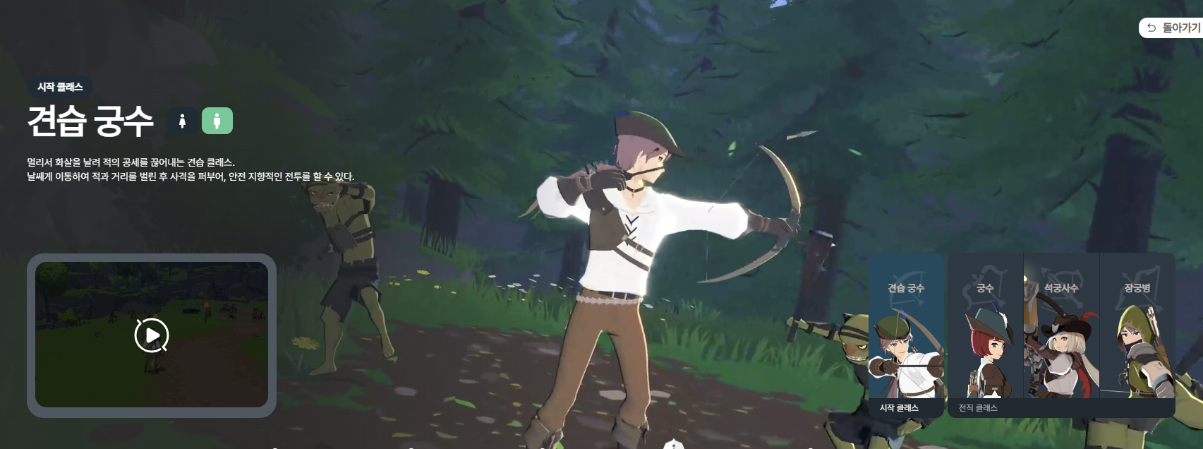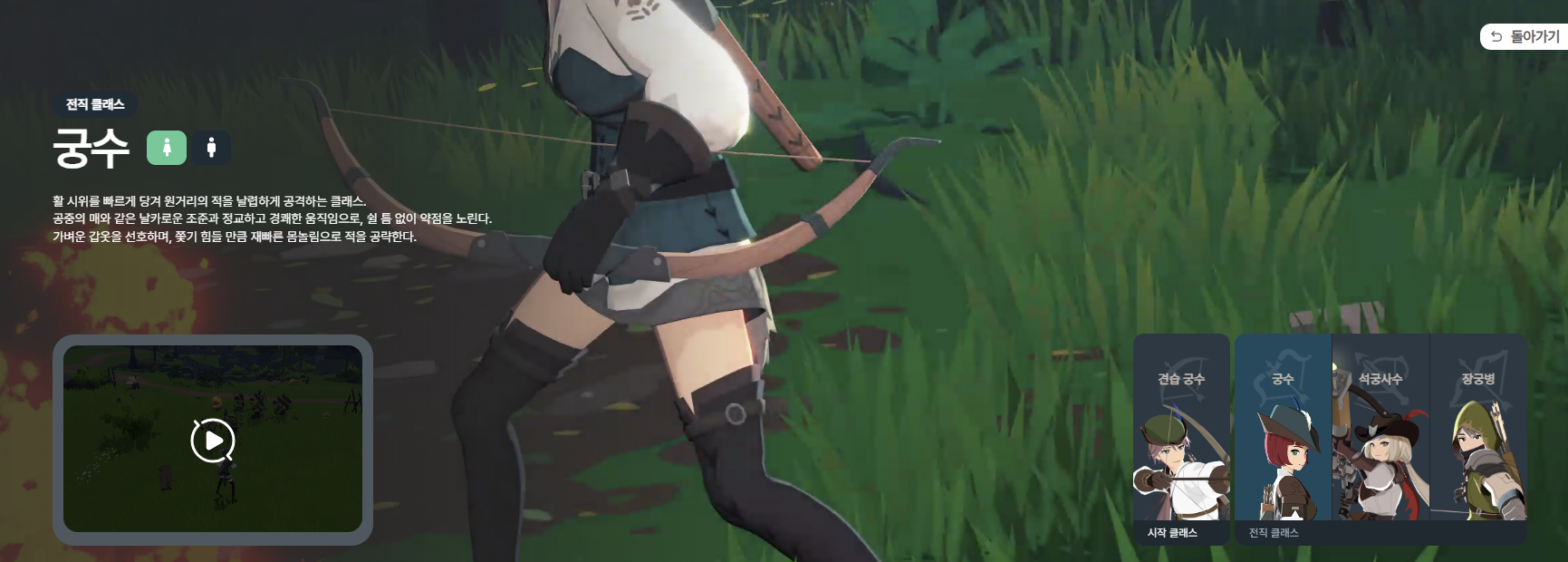 - 궁수: 민첩하고 안정적인 원거리 딜러.