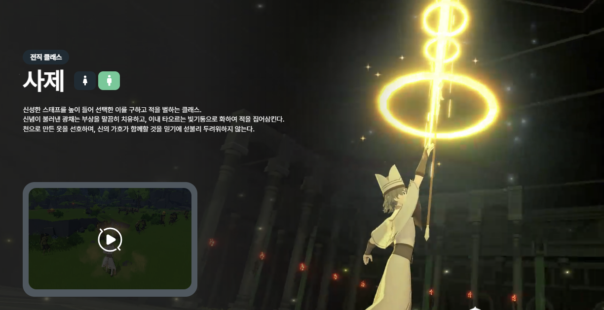- 사제: 힐러의 하이브리드 형태. 공격과 회복을 동시에.