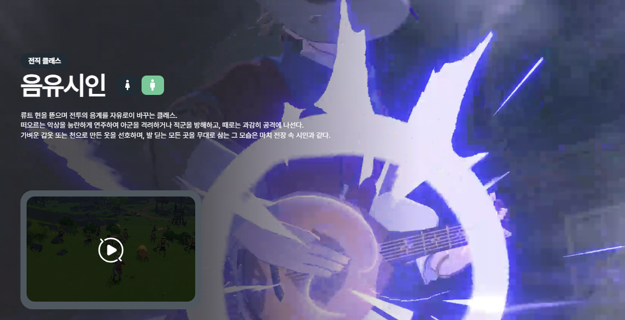 - 음유시인: 다양한 버프/디버프 제공. 전체적인 파티 효율을 높임.