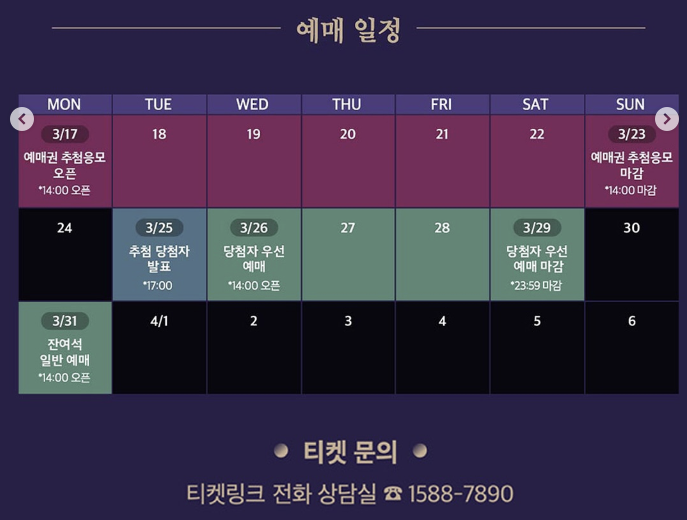 | 당첨자 선예매 | 3월 26일(수) 오후 2시부터 4일간 |