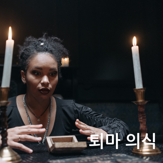 - 퇴마 뜻은 라틴어에서 유래한 ‘엑소시즘(Exorcism)’과도 관련이 있으며, 서양에서는 악마 쫓기, 동양에서는 잡귀 쫓기가 대표적입니다.